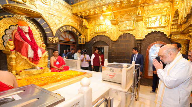 महाराष्ट्र के एक दिवसीय दौरे पर आए केंद्रीय गृह एवं सहकारिता मंत्री अमित शाह ने शिरडी स्थित साईंबाबा मंदिर में रविवार को पूजा-अर्चना की। अमित शाह के साथ राज्य के मुख्यमंत्री देवेंद्र फडणवीस और उपमुख्यमंत्री एकनाथ शिंदे एवं अजित पवार तथा अन्य लोग भी मौजूद रहे।