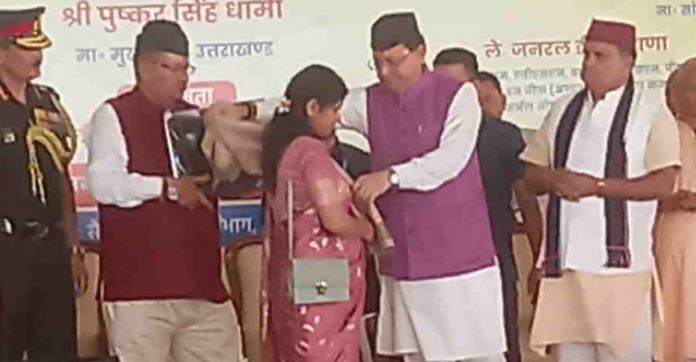 लैंसडौन पहुंचे सीएम धामी, शहीदों के परिजनों को किया सम्मानित