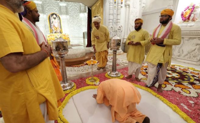हनुमानगढ़ी से निकलने के बाद मुख्यमंत्री योगी आदित्यनाथ सीधे श्रीराम जन्मभूमि परिसर पहुंचे। यहां उन्होंने प्रभु श्रीरामलला के दरबार में हाजिरी लगाई, आरती उतारी और मंदिर की परिक्रमा की।