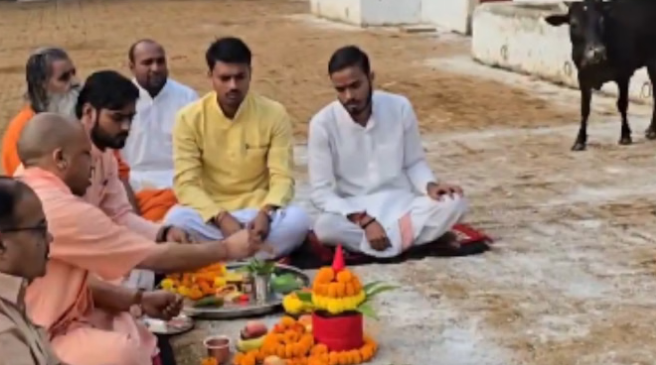 यूपी: सीएम योगी ने की गोरखनाथ मंदिर में गोवर्धन पूजा