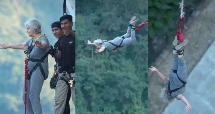 वीडिओ 13 अक्तूब का बताया जा रहा है। जिसमें ब्रिटेन की 83 वर्षीय ओलेना बायको शिव पुरी क्षेत्र के एक बंजी जंपिंग केंद्र में बंजी जंपिंग करती हुई दिखाई दे रही है। वह 117 मीटर की ऊंचाई से कूद मार रही है।