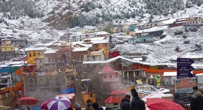 उत्तराखंड : बदरीनाथ धाम में हुई बर्फबारी, चारों तरफ बिछी सफेद चादर