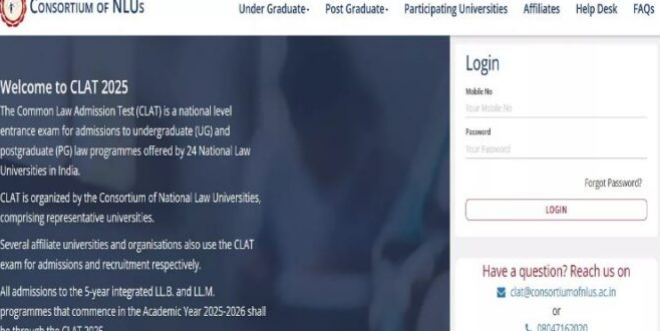 क्लैट परीक्षा का एडमिट कार्ड डाउनलोड करने के लिए उम्मीदवारों को सबसे पहले आधिकारिक वेबसाइट consortiumofnlus.ac.in पर जाकर विजिट करना होगा।