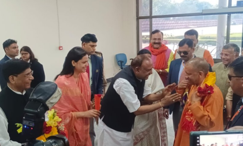 एयरपोर्ट पर सीएम योगी के पैर छूने को दौड़े मंत्री और विधायक