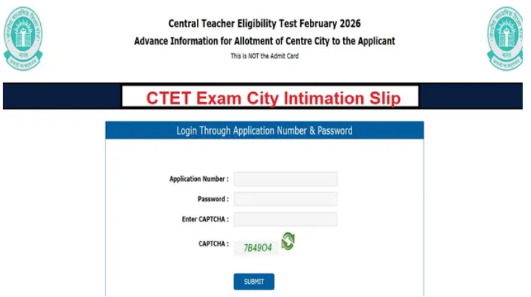 सेन्ट्रल टीचर एलिजिबिलिटी टेस्ट 2026 के लिए आवेदन करने वाले उम्मीदवारों के लिए एग्जाम सिटी इंटीमेशन स्लिप जारी कर दी गई है। आवेदनकर्ता तुरंत ही सेन्ट्रल बोर्ड ऑफ स्कूल एजुकेशन (CBSE) की ऑफिशियल वेबसाइट ctet.nic.in से डाउनलोड कर सकते हैं। एग्जाम सिटी स्लिप द्वारा उम्मीदवार अपने परीक्षा शहर की डिटेल हासिल कर सकते हैं और उसी के अनुसार अपनी पूर्व यात्रा की तैयारी कर सकते हैं। परीक्षा का आयोजन 8 फरवरी को करवाया जायेगा।